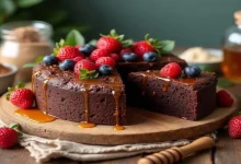 این کیک شکلاتی ویژه نیازی به ارد و شکر ندارد و بسیار کم کالری و کم چرب است. برای پف کردن کیک شکلاتی می توانید از قالب های فلزی استفاده کنید.