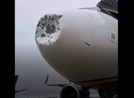 بلایی که تگرگ بر سر دماغه هواپیما آورده است! (فیلم)