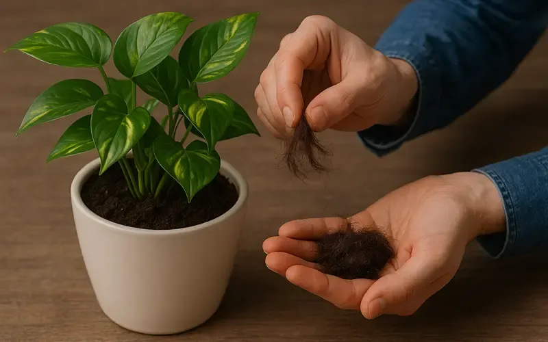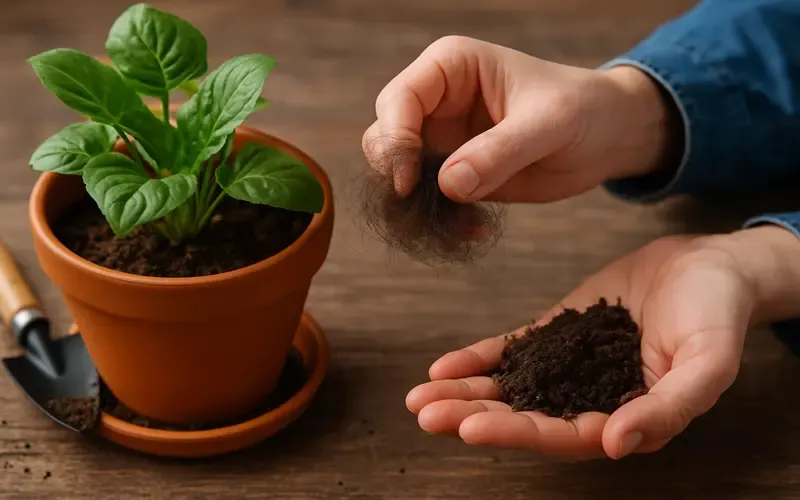 فواید استفاده از موی سر در خاک گلدان
