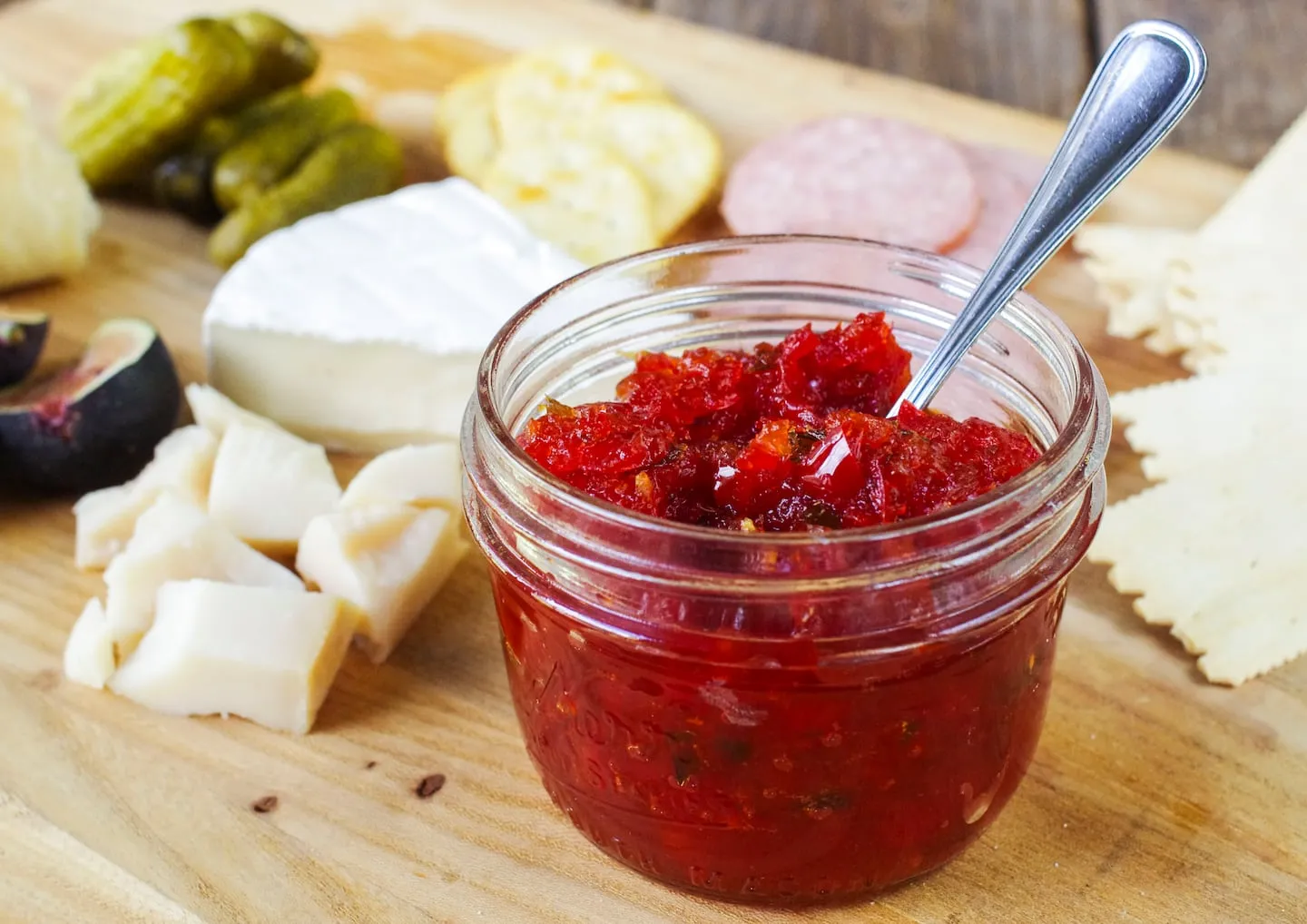 مربای فلفل تند را می توانید روی غذاها یا سالادها بریزید.