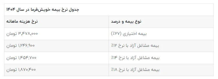 هزینه بیمه خویش فرما در سال ۱۴۰۴