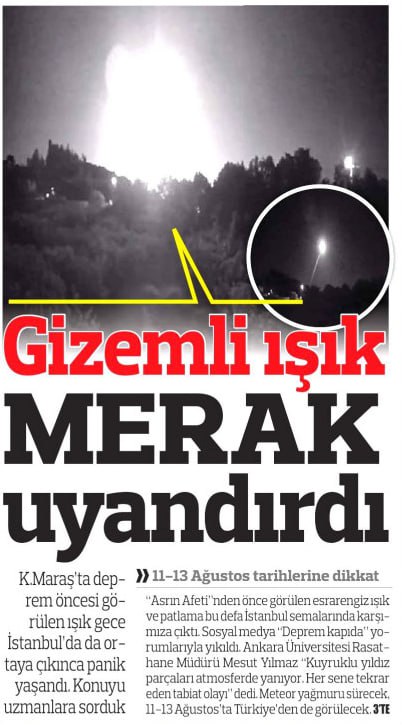 به گزارش عصر ترکیه به نقل از نشریه تورکیه گازتسی، برخی گزارشها و تصاویر منتشر شده در شبکه های اجتماعی از دیده شدن نوری قوی و عظیم شب هنگام در آسمان استانبول حکایت دارد.