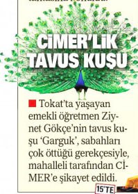 در شهر توکات ترکیه آوازهای صبحگاهی یک طاووس همسایگان را خشمگین کرد.