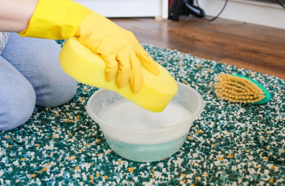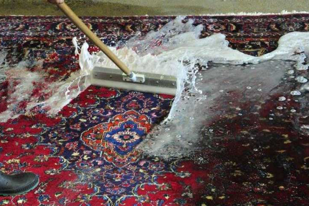 سپس با یک اسفنج نرم روی لکه ها بکشید و فرش را با آب تمیز بشویید.