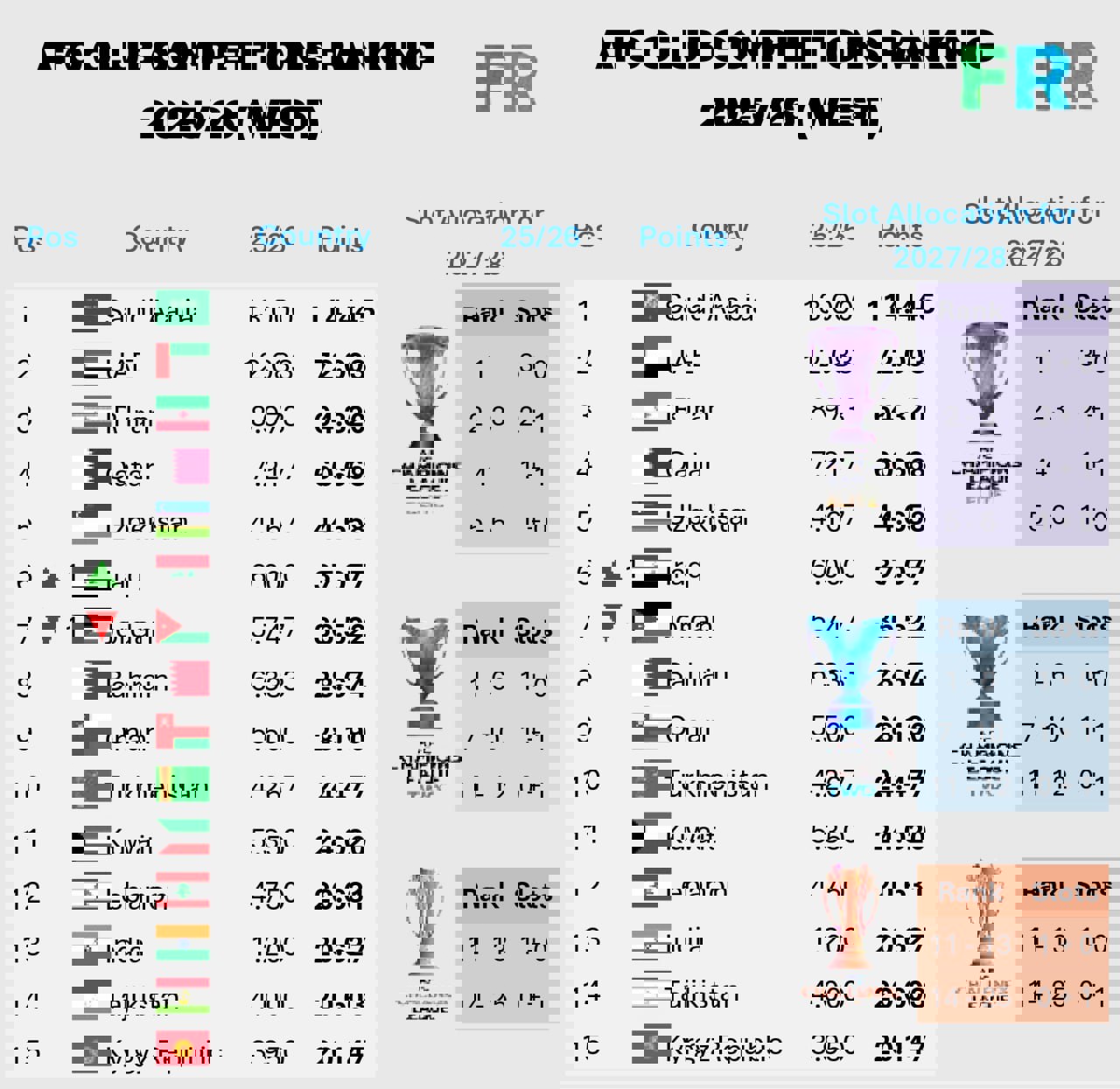 در سوی مقابل، قطر همچنان شرایط مطلوبی ندارد. میانگین امتیاز فصل جاری قطر ۷.۲۱۷ است و این کشور با امتیاز کلی ۶۰.۶۶۸ در رتبه چهارم باقی مانده؛ فاصله‌ای حدود ۳.۶۵ امتیاز با ایران. چهار تیم قطری در مجموع عملکرد متوسطی داشته‌اند و شکست‌ها و تساوی‌های پیاپی السد و الاهلی، به همراه نوسان‌های الغرافه و الدحیل، عملاً اجازه نزدیک شدن قطر به ایران را نداده است.