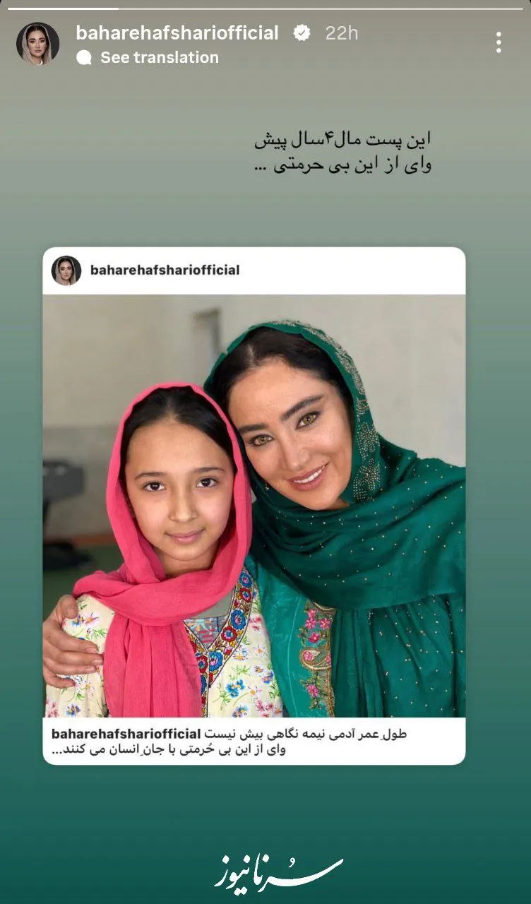 در این مطلب استوری بهاره افشاری در حمایت از افغان ها را می بینید.