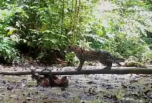 یک تنبل پس از اینکه مرد عکاس بچه اش را از روی زمین برداشته و به او تحویل داد دستش را به نشانه تشکر به سوی وی دستش دراز کرد.