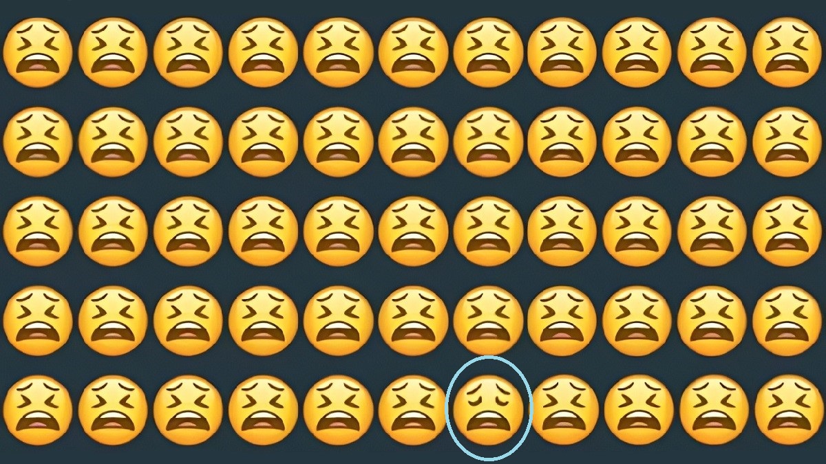 در نگاه اول خواهید گفت که همه چیز عادی است. در این دام نیفتید؛ یک ویژگی خاص در تست بینایی یافتن ایموجی صورت گریان متفاوت وجود دارد