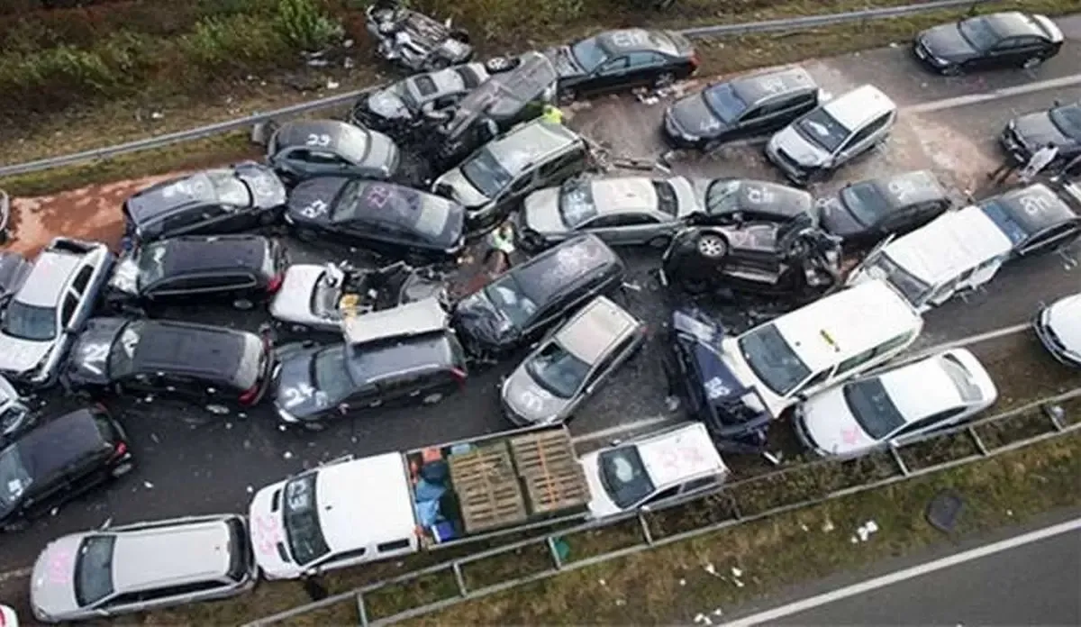تصادف زنجیرهای ۲۰ خودرو در جاده تبریز- زنجان (جزئیات)