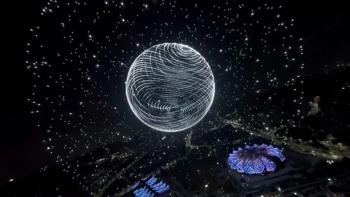 تصاویری دیدنی از پرواز همزمان ۱۵۹۴۷ پهپاد در آسمان چین (فیلم)