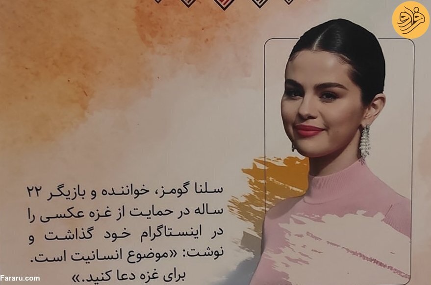 در ذیل تصویر سلنا گومز نوشته شده: سلنا گومز، خواننده و بازیگر ۲۲ ساله در حمایت از غزه عکسی در اینستاگرام خود گذاشت و نوشت: موضوع انسانیت است. برای غزه دعا کنید.
