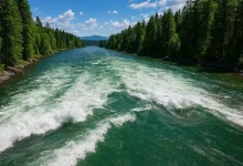 گاهی رودخانهای از گازهای داغ درست بالای سر ما جریان مییابد. در تصویر روز ناسا، این رودخانه پدیدهای به نام تقویت سرعت تابش حرارتی قوی یا استیو (STEVE) است که به رنگهای قرمز، سفید و صورتی روشن میدرخشد.