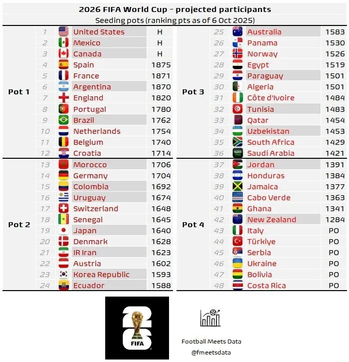در ادامه رقابتهای انتخابی جام جهانی ۲۰۲۶، تیم ملی فوتبال ایران در موقعیت مناسبی برای قرارگیری در سید دوم این رقابتها قرار دارد. بر اساس پیشبینیهای فعلی، ایران همراه با ژاپن تنها تیمهای قطعی سید دوم هستند که میتوانند در گروهبندی مطلوبتری قرار گیرند.