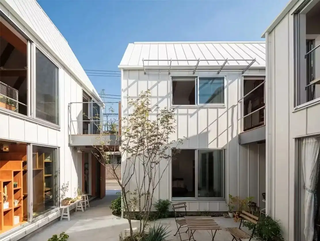 ساختمانهای بههمپیوسته، فضایی مستقل برای پدر، مادر و دختر فراهم کردهاند تا هرکدام به فعالیتهای خلاقانه خود بپردازند. این پروژه در توکیوی ژاپن اجرا شده و سازنده آن دفتر معماری «تاکِشی هوساکا» است. مساخت خانه ۱۳۷.۳ متر مربع است.