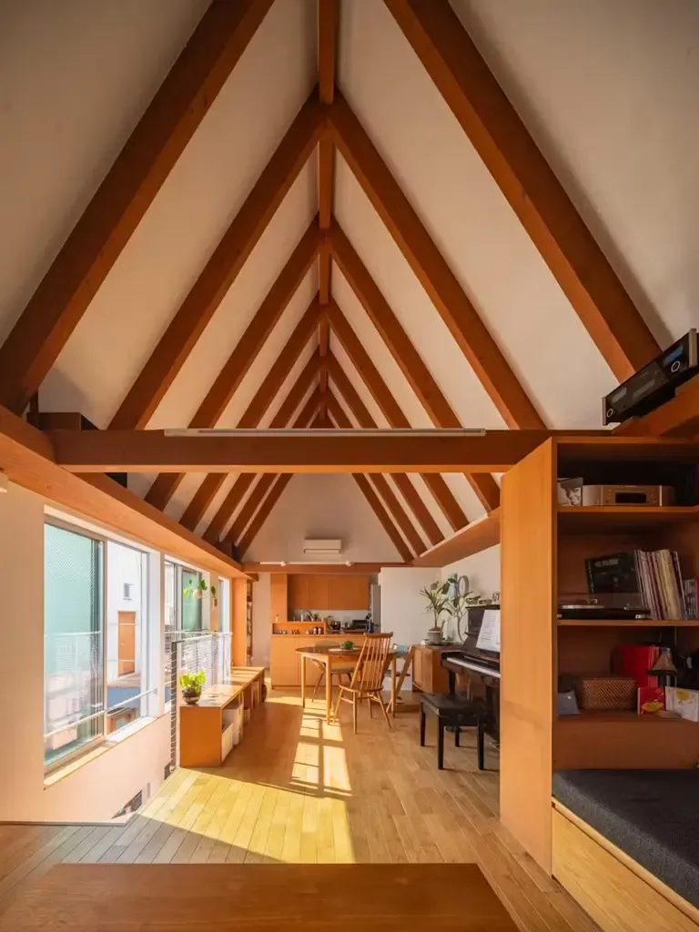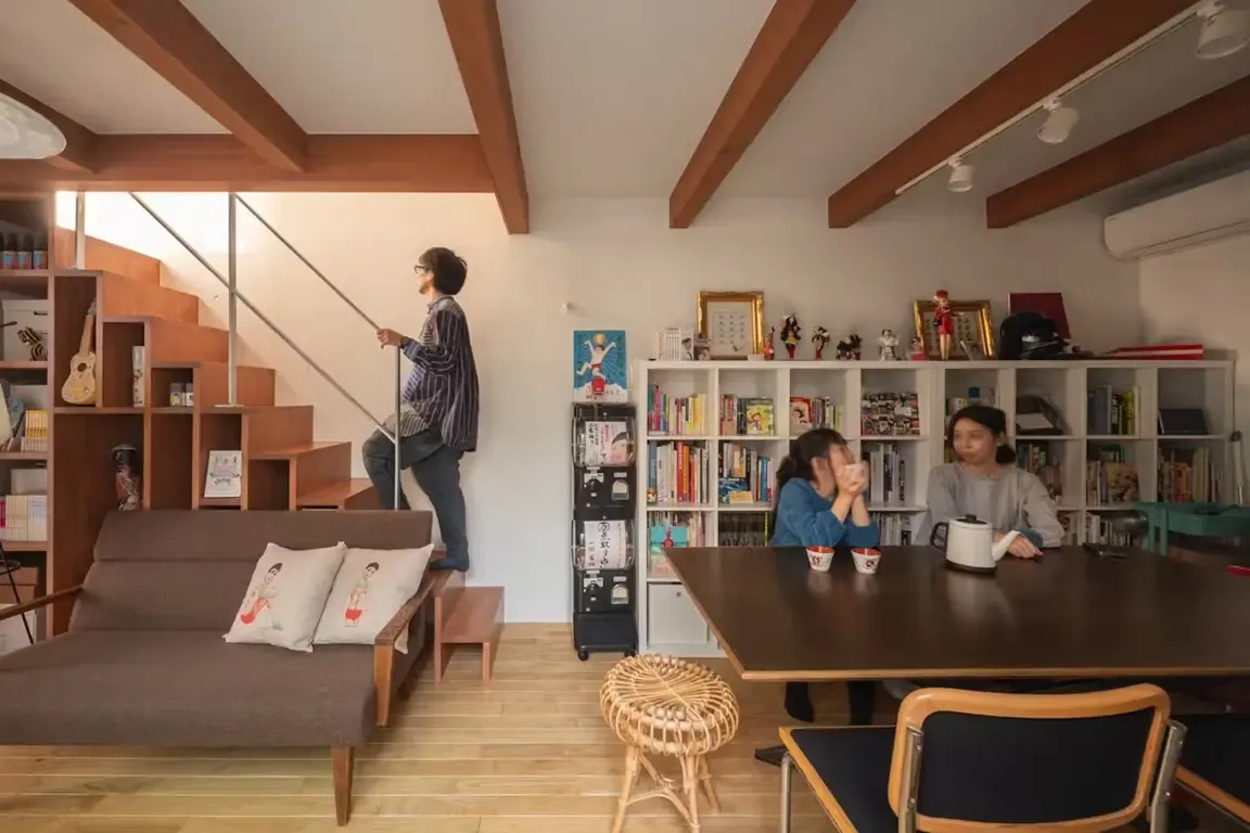ساختمانهای بههمپیوسته، فضایی مستقل برای پدر، مادر و دختر فراهم کردهاند تا هرکدام به فعالیتهای خلاقانه خود بپردازند. این پروژه در توکیوی ژاپن اجرا شده و سازنده آن دفتر معماری «تاکِشی هوساکا» است. مساخت خانه ۱۳۷.۳ متر مربع است.