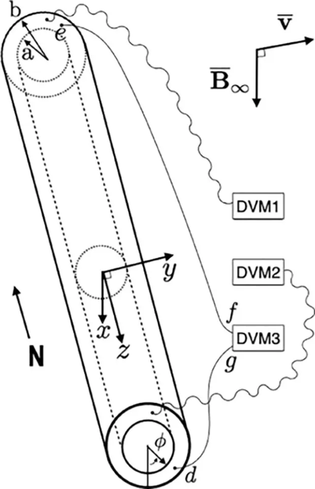 پس از اندازهگیری و در نظر گرفتن همه عوامل، یک ولتاژ ۱۸ میکروولت باقی ماند. این پتانسیل کوچک با استفاده از استوانههای مختلف یا قرار دادن همان استوانه در زاویهای متفاوت از بین رفت که نشان میدهد این ولتاژ توسط چرخش زمین تولید میشود.