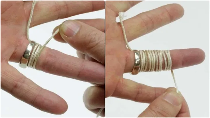 مرحله دوم: نخ را دور انگشت بپیچید