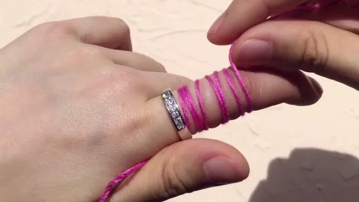 مرحله اول: نخ را از زیر انگشتر عبور دهید