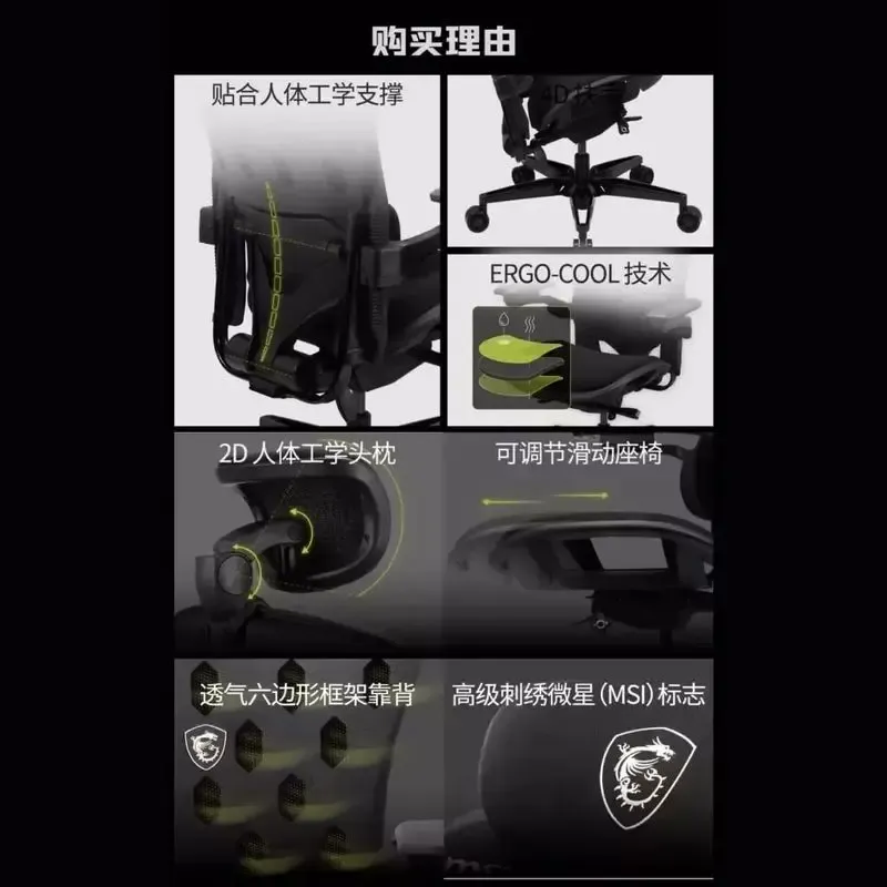 در بخش پشتی، MSI یک مکانیزم تکیهگاه دینامیک ارائه کرده که متناسب با تغییر وضعیت بدن کاربر حرکت میکند. این پشتی در بازه ۱۰۰ تا ۱۳۵ درجه قابلتنظیم است و سیستم کنترل مقاومت آن، فشار مناسبی را در هنگام تکیه دادن ایجاد میکند. چنین طراحی باعث میشود بخش پایین کمر همیشه در حالت حمایت قرار بگیرد، بدون اینکه کاربر لازم باشد تنظیمات دستی انجام دهد.