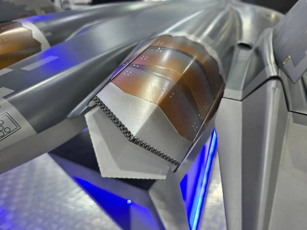 اما نازلهای رانش رادارگریز 2D TVC { TVC یا Thrust Vector Control یا کنترل بردار رانش} به این معناست که نازل به طور کامل نمیچرخد بلکه در امتداد دو محور بالا-پایین/ چپ-راست حرکت کرده و به هواپیما قدرت مانور فوق العاده میدهد.