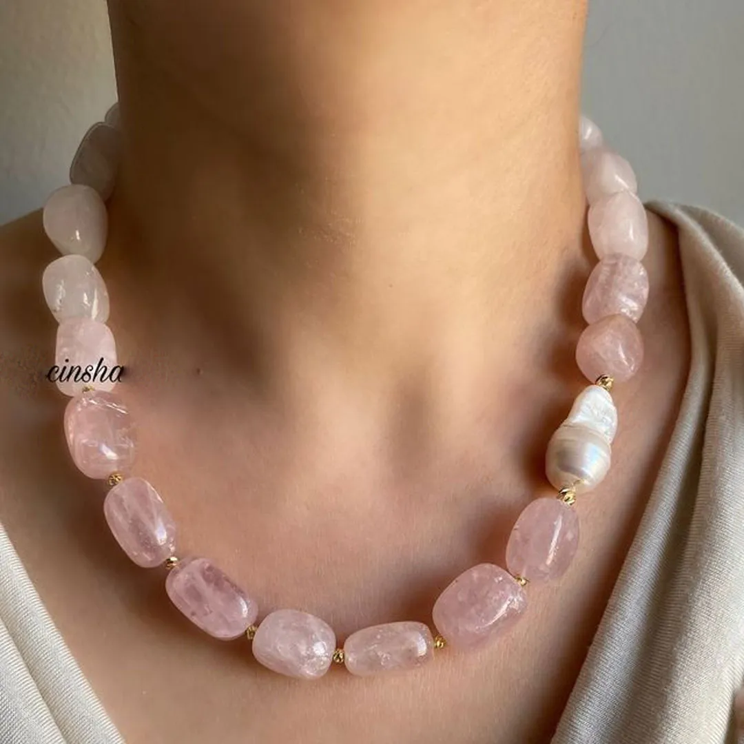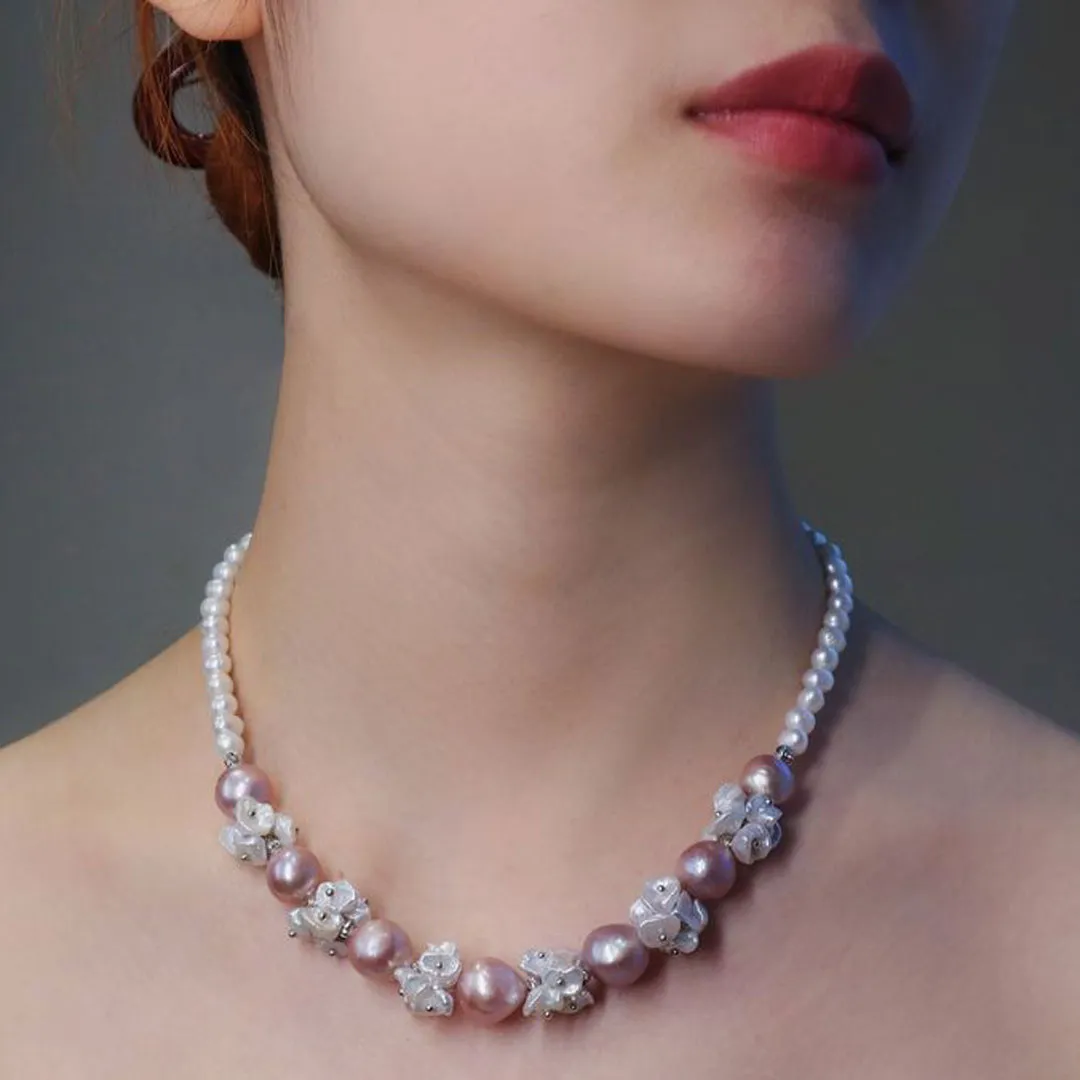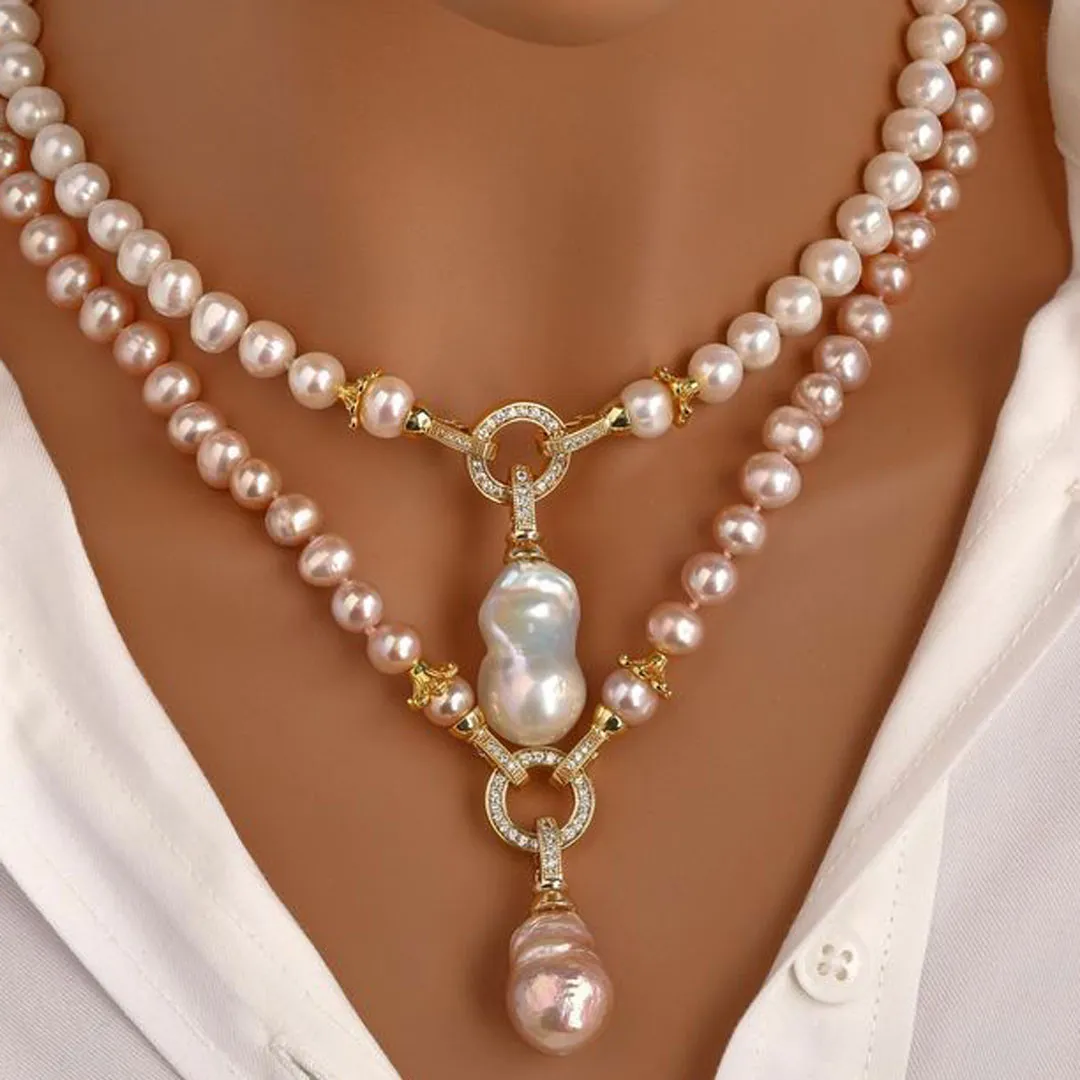 گردنبند زنانه مرواریدی صورتی: مرواریدهای صورتی به دلیل رنگ لطیف و منحصربهفردشان، انتخابی خاص برای گردنبندهای زنانه هستند. این نوع مرواریدها نمادی از ظرافت، آرامش و زیبایی طبیعیاند و در طرحهای متنوعی عرضه میشوند. در بانوزی، چند مدل از جذابترین گردنبندهای زنانه با مروارید صورتی را معرفی میکنیم.