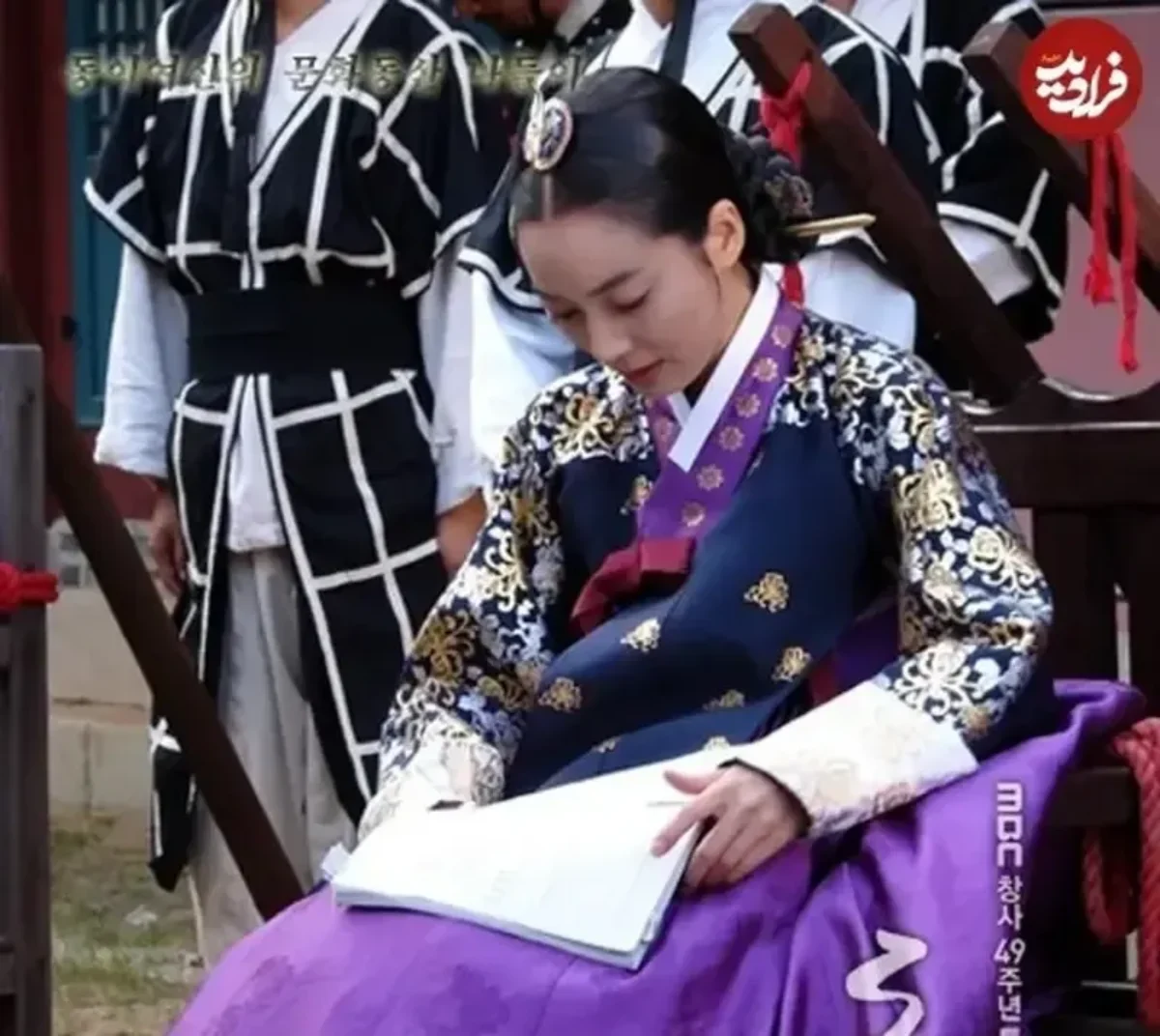 لی سو یئون بازیگر نقش بانو جانگ در حال خواندن دیالوگهایش در پشتصحنه سریال دونگیی