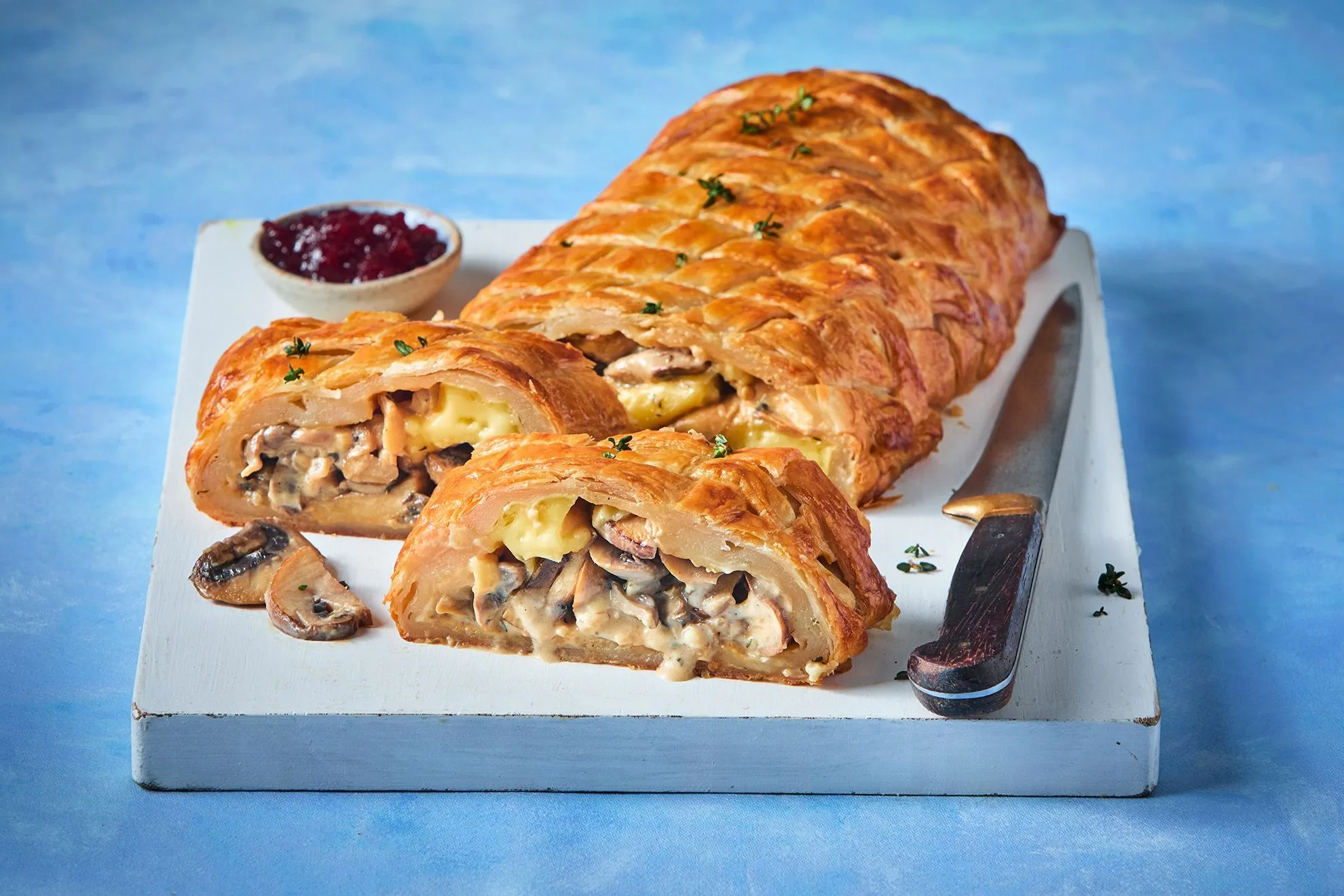 به گزارش اکالا، خمیر هزارلا را به شکل مستطیل باز کنید، لبهها را مرتب کرده و کمی فریز کنید. خطوط طولی و برشهای مورب روی خمیر ایجاد کرده و مواد مرغ و قارچ را وسط آن بریزید.