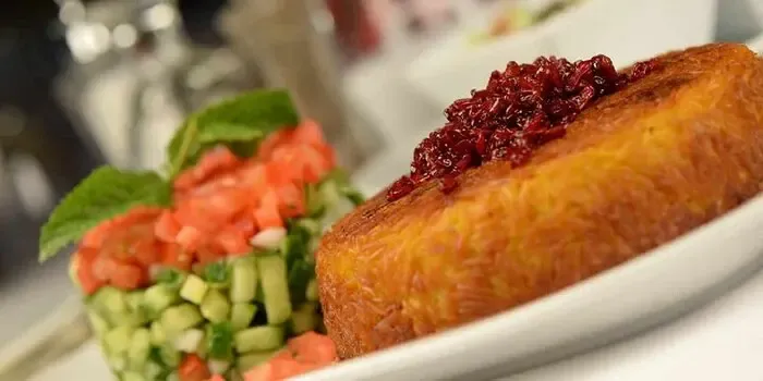 ۱۳. یک ساعت زمان بدهید تا ته چین با حرارت ملایم دم بکشد.