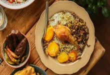 زعفران: استفاده از زعفران دمکرده در این غذا به طعم و عطر پلو اضافه میکند و ظاهر آن را زیباتر میسازد.