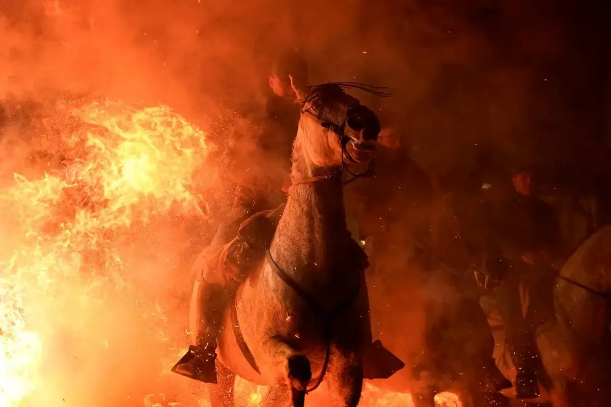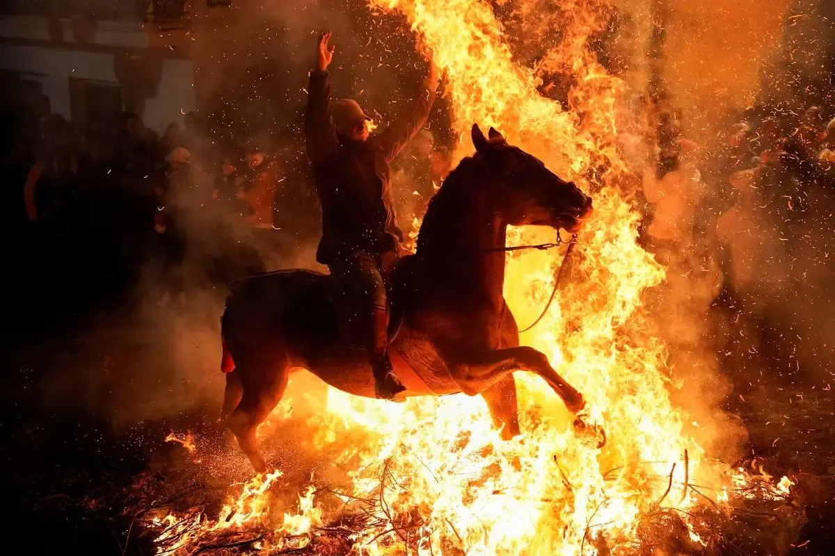 عبور با اسب از میان آتش در جشنواره سنتی اسپانیا (عکس)