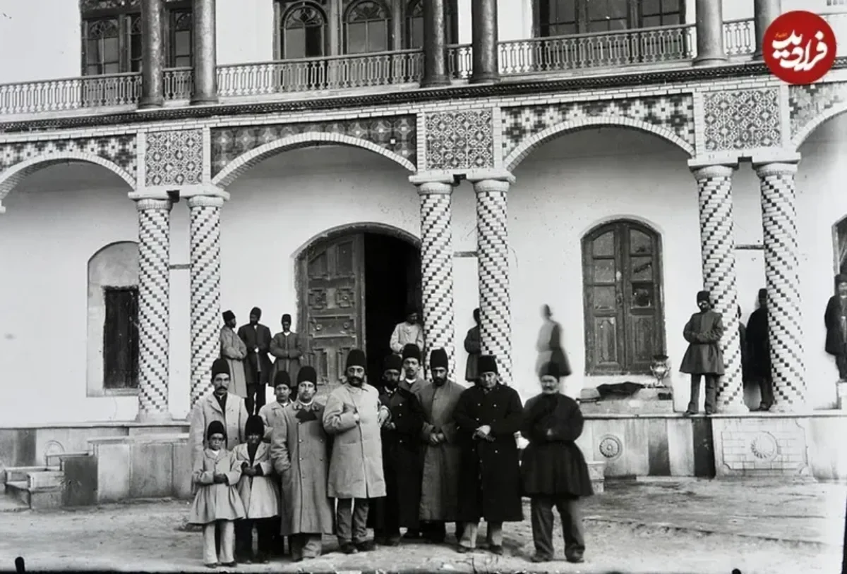 مظفرالدین شاه در دوران ولیعهدی در میان همراهان و خدمتکارانش