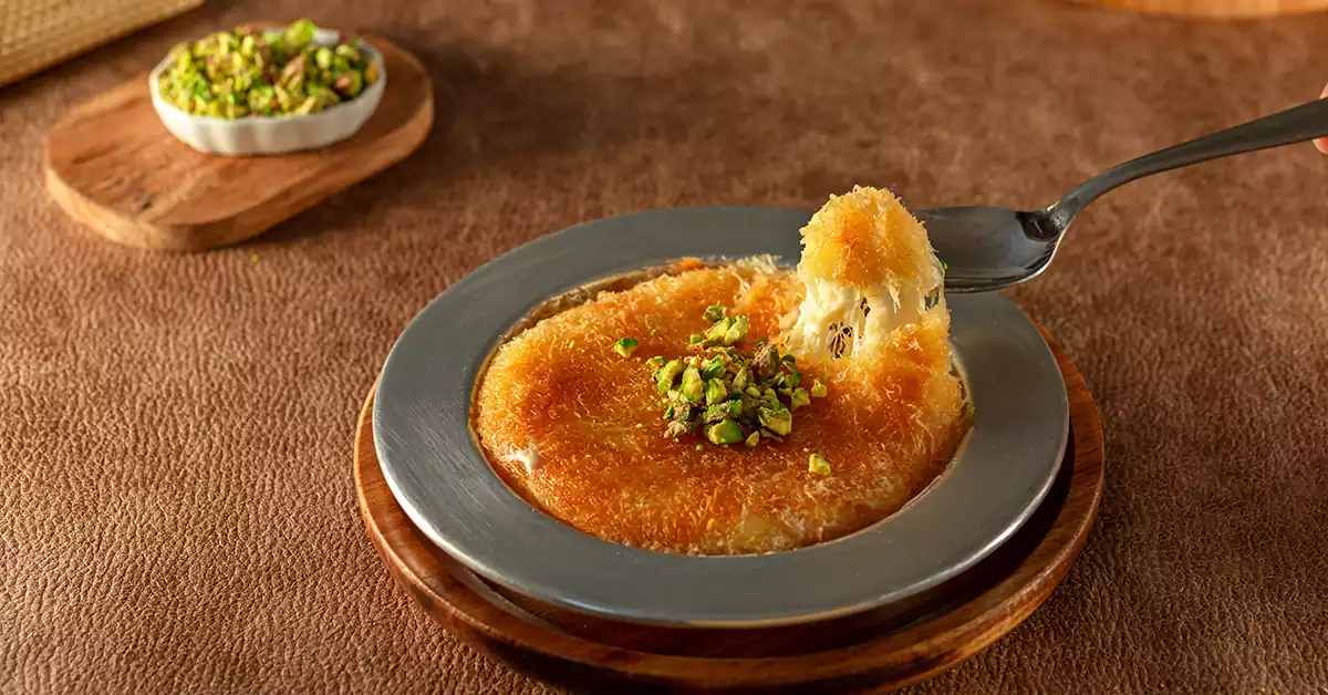 کونفه یک دسر داغ و فوقالعاده است که طرفداران پروپاقرصی دارد. این شیرینی از رشتههای نازک کادایف تهیه میشود که لابهلای آن پنیر مخصوصی قرار گرفته و سپس در فر پخته میشود تا پنیر ذوب و کادایف طلایی شود.