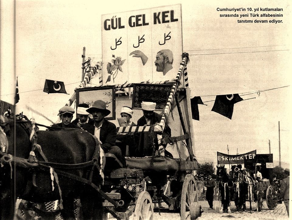 آتا تورک که دل خوشی از عثمانی ها نداشت، تغییرات گسترده ای در زمینه های سیاسی و فرهنگی و مذهبی در ترکیه جدید شکل داد. از جمله دستور داد الفبای عربی از زبان ترکی کنار گذاشته شود و به جای آن از حروف لاتین استفاده شود. در الفبای جدید، تعدادی از حروف الفبای لاتین تغییر شکل جزئی داده شدند مانند Ç،Ğ،I،Ö،Ş .