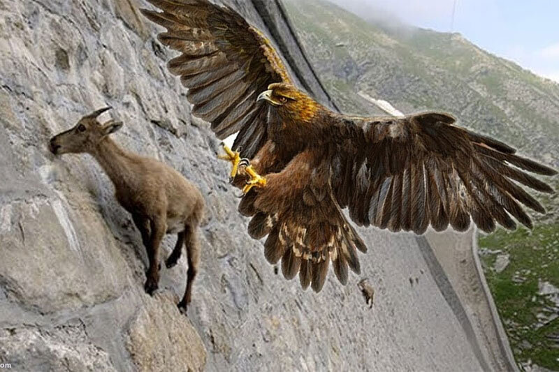 در ویدیویی زیر شکار یک بز کوهی توسط عقاب را مشاهده می‌کنید.