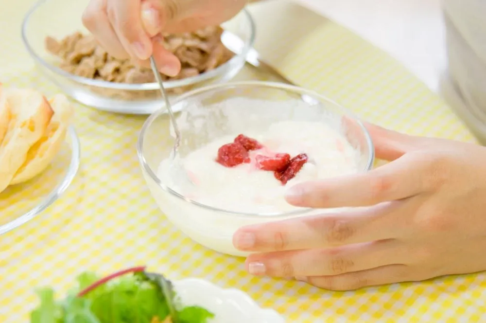 اضافه کردن ماست: پس از خنک شدن شیر، ماست طبیعی را به آن اضافه کرده و به آرامی هم بزنید تا کاملاً ترکیب شود.