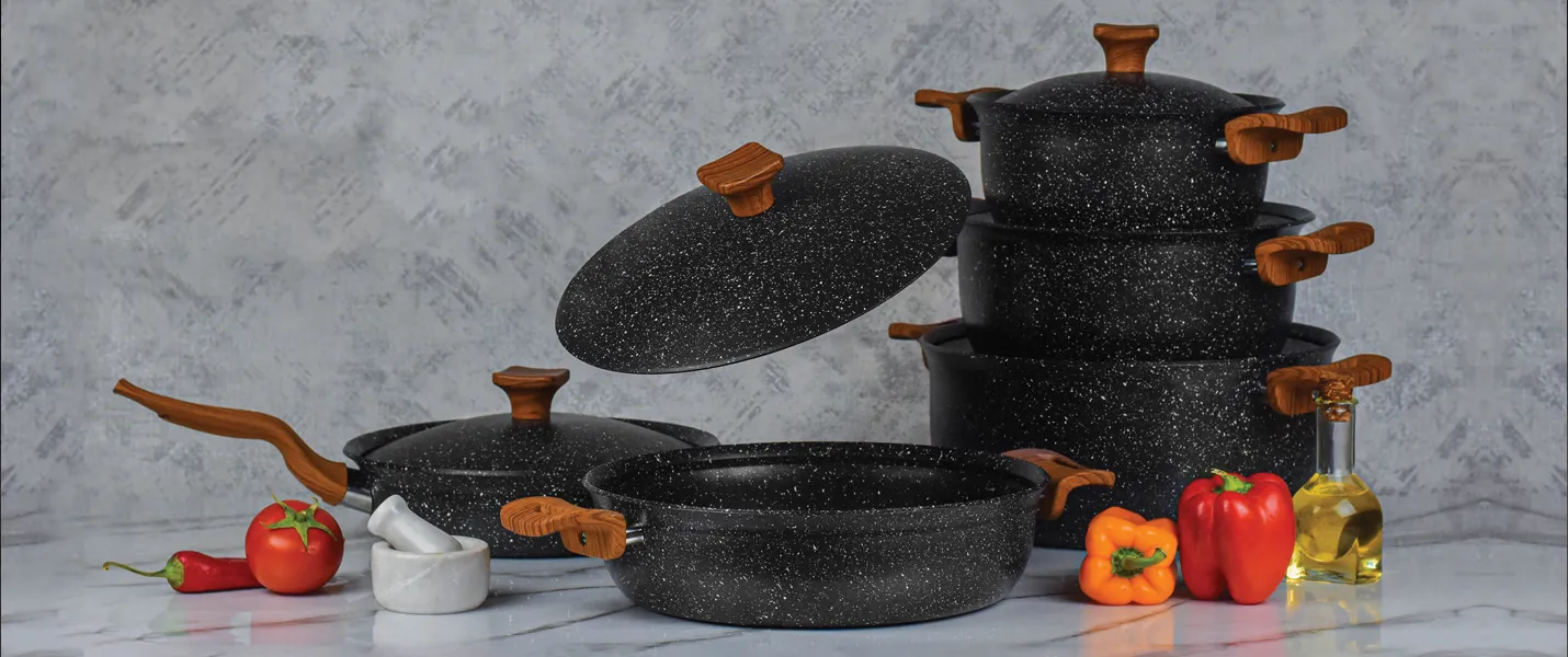 قابلمه های گرانیتی معمولاً از آلیاژ آهن یا آلومینیوم ساخته می شوند که با لایه ای از گرانیت پوشش داده می شود. این پوشش گرانیتی باعث می شود که قابلمه ها به طور قابل توجهی مقاوم تر و ضد خش باشند. همچنین، این نوع قابلمه ها به دلیل پوشش نچسب خود، به راحتی تمیز می شوند و غذا به آنها نمی چسبد.