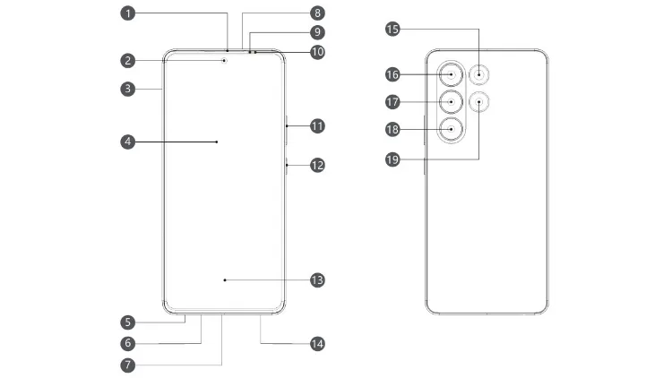 دوربین ۵۰ مگاپیکسلی وظیفهی ثبت تصاویر سلفی را بر عهده دارد. طرحهای موجود در دفترچهی راهنما شباهت زیادی به گلکسی S25 اولترا دارند.