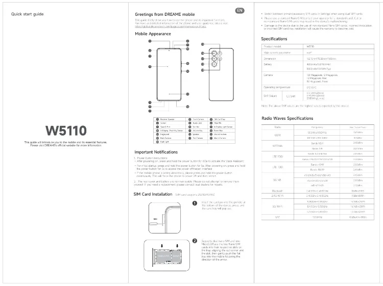 گوشی هوشمند دریمی E1 که با شمارهمدل W5110 شناخته میشود، پیشتر در دیتابیس EPREL رویت شده بود. بهعلاوه، دفترچهی راهنمای کاربر در اینترنت پیدا شده و این منابع، اساس اطلاعات فاششده هستند.