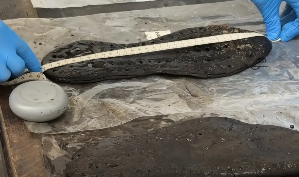 اندازهی کفشهای تازه کشفشده واقعا بزرگتر از حد معمول است. با اینکه ممکن است بهدلیل گذشت زمان و شرایط محیطی، اندازهی کفشها کمی کوچک شده باشد (حداکثر تا حدود ۱ سانتیمتر)، حتی با درنظر گرفتن این جمعشدگی، باز هم ابعاد کفشها نشان میدهد صاحبان آنها پاهای بسیار بزرگی داشتهاند.
