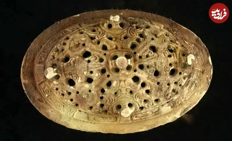 یکی از دو سنجاق بیضی که هنوز در حال مرمت است