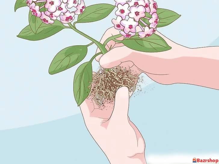 بعد از خارج کردن گیاه، ریشه ها را به آرامی با نوک انگشتان ماساژ دهید تا کمی از هم باز شوند. این کار باعث می شود ریشه ها در خاک جدید بهتر گسترش پیدا کنند. مراقب باشید ریشه ها پاره نشوند.