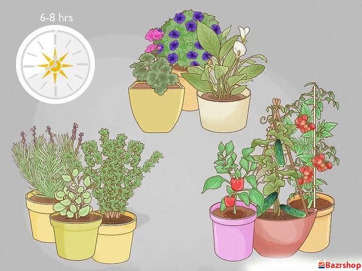 قبل از خرید، مکان مورد نظر را بررسی کنید. مطمئن شوید که حداقل ۶ ساعت نور مستقیم خورشید دریافت می کند. در غیر این صورت، گیاهان سایه دوست یا نیمه سایه را انتخاب کنید.
