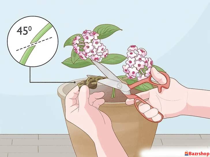 برگ ها و گل های خشک را با قیچی تمیز و با زاویه ۴۵ درجه ببرید. برای کنترل رشد سریع گیاه، ساقه ها را از نیم سانتی متر بالاتر از «گره» (محل جوانه زدن برگ جدید) قطع کنید. هرگز بیش از ۳۰٪ گیاه را در یک نوبت هرس نکنید.
