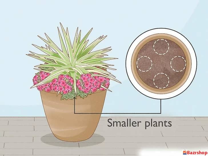 گیاهان کوچک تر، گل دار یا رونده را در اطراف گیاه مرکزی و نزدیک لبه ها بکارید.