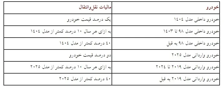 نرخ مالیات نقل و‌انتقال خودرو در سال ۱۴۰۴