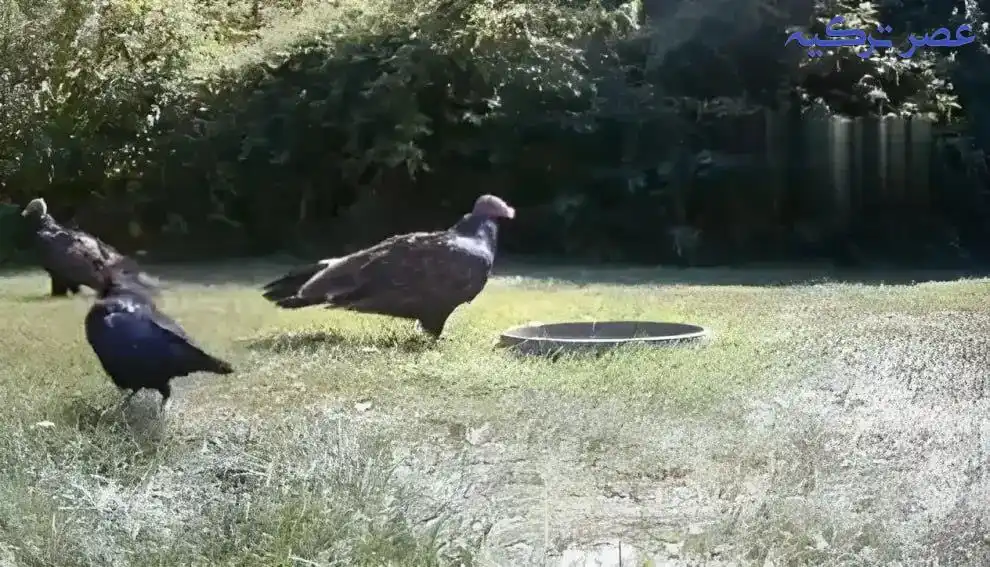 هوش بالای کلاغ/ ایجاد دعوا بین ۲ کرکس برای آب تنی! (فیلم)