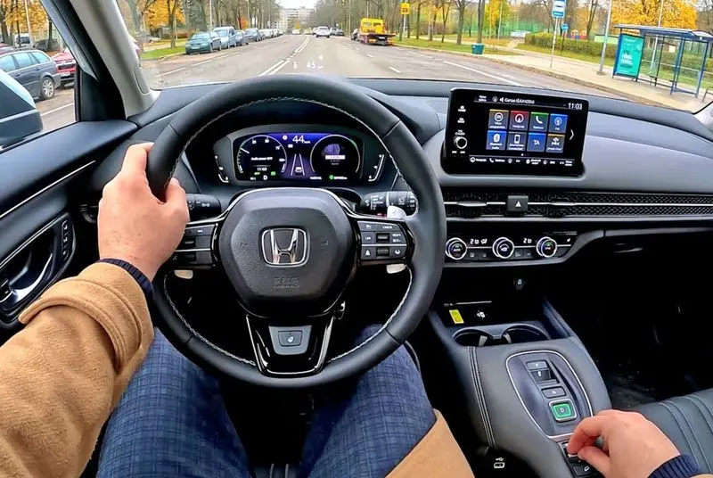 انتقال نیرو به چرخهای جلو توسط جعبهدنده e‑CVT انجام شده و در نتیجه، شتاب صفر تا صد کیلومتر را در حدود ۸ ثانیه رقم میزند. بدین ترتیب، سیستم هیبرید هوشمند هوندا بهصورت خودکار میان حالتهای بنزینی، برقی و ترکیبی سوییچ میکند. ساختار سری/موازی سیستم e‑HEV باعث شده مصرف و آلایندگی خودرو پایین بماند و عملکرد روزمره با چابکی همراه باشد.