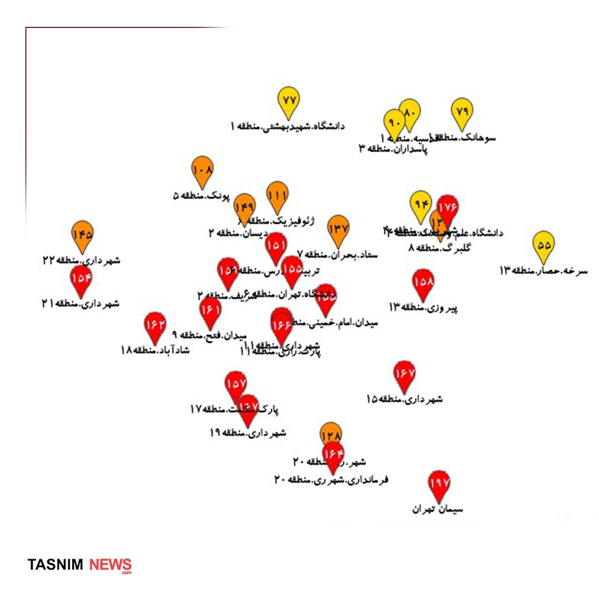 وضعیت هوای این مناطق تهران قرمز شد