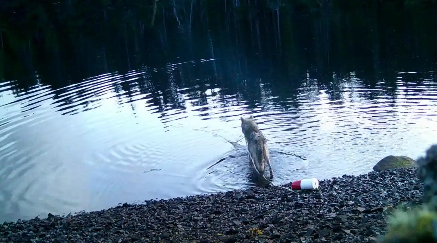 برای پیدا کردن مجرم، آنها در اطراف تلهها دوربین کار گذاشتند. درست روز بعد، پاسخ خود را گرفتند. حوالی ساعت ۹ شب در تاریخ ۲۹ مه ۲۰۲۴، یک گرگ خاکستری باهوش ضبط شد که به سمت شناور رفت، آن را به ساحل برد و سپس طناب شناور را کشید تا تله را بالا بکشد و به سرعت طعمه را ببلعد.