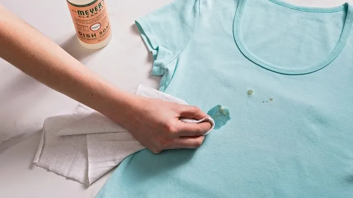برای این کار، ابتدا قسمت خشک شده چسب را از روی لباس جدا کرده و سپس یکی از مواد ذکر شده را روی لکه بمالید. پس از چند دقیقه، لباس را با آب و شوینده مناسب لباس بشویید تا لکه به طور کامل از بین برود.